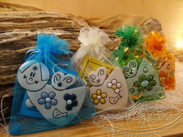 Andílek je dodaný v organzovém pytlíčku, který ladíme podle barev produktu a podle aktuálních skladových zásob.