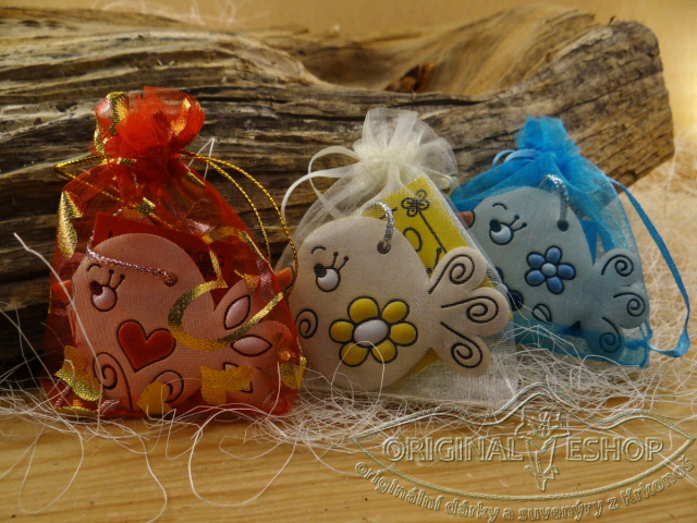 Výrobek je dodaný v organzovém pytlíčku, který ladíme podle barev produktu a podle aktuálních skladových zásob.