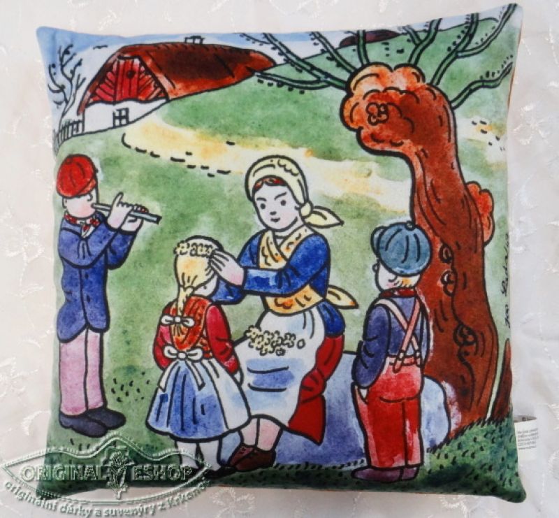Měkký polštářek s motivem Josefa Lady, vhodný do postýlky, na cesty i jako dekorace. Materiál mikrovelur, obrázek tisk, náplň duté vlákno.